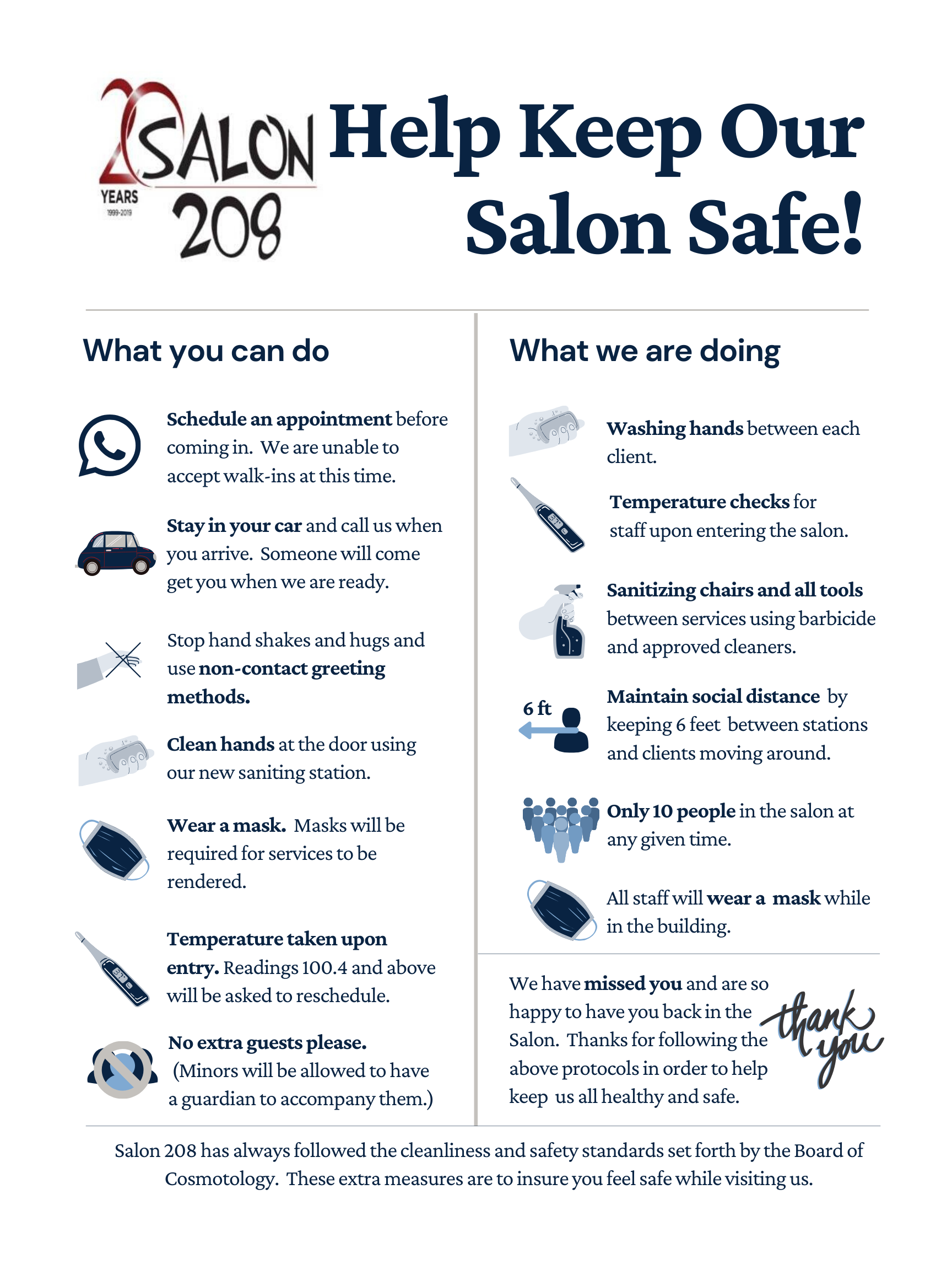 We also have a few requests of you to help keep our salon safe.